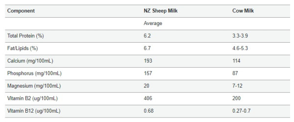 Data also shows that sheep milk has higher nutritional content than cow's milk: